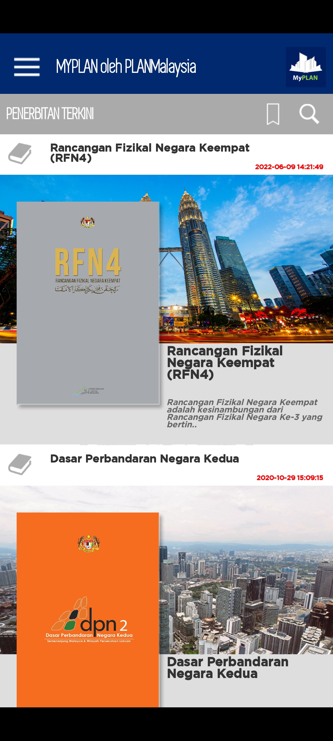 MyPLAN merupakan aplikasi yang dibangunkan oleh PLANMalaysia sebagai inisiatif untuk meningkat keberkesanan perkhidmatan kepada pengguna. Aplikasi ini membantu pengguna bagi capaian dokumen-dokumen dasar seperti Rancangan Fizikal Negara Keempat (RFN4), Dasar Perbandaran Negara Kedua (DPN2), Dasar Perancangan Fizikal Desa Negara 2030 (DPFDN) dan lain-lain Dasar di Peringkat Nasional.